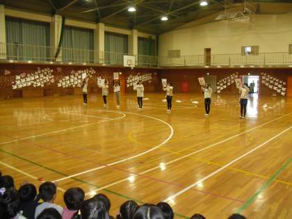 2月28日、6時間目終了後、たくさんの子どもと先生が見守る中、バトン部の卒業発表会をしました。6年生バトン部の子どもたちは、入部から二年半一生懸命練習してきました。トワリングやダンスの発表の中に、2年半の練習の積み重ねがしっかりと感じられました。そして、「今までありがとう」と出されたカードの言葉通り、支えてくれた皆さんへの感謝の気持ちも伝わってきました。バトン部の皆さん、2年半、ご苦労様でした。
