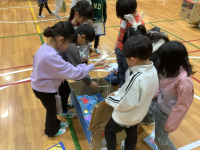 何時と何時半を読んだり、模型の時計でつくったしました。模型の時計でつくる時は、短い針と長い針の位置に気を付けて、みんなとても早くできていました。