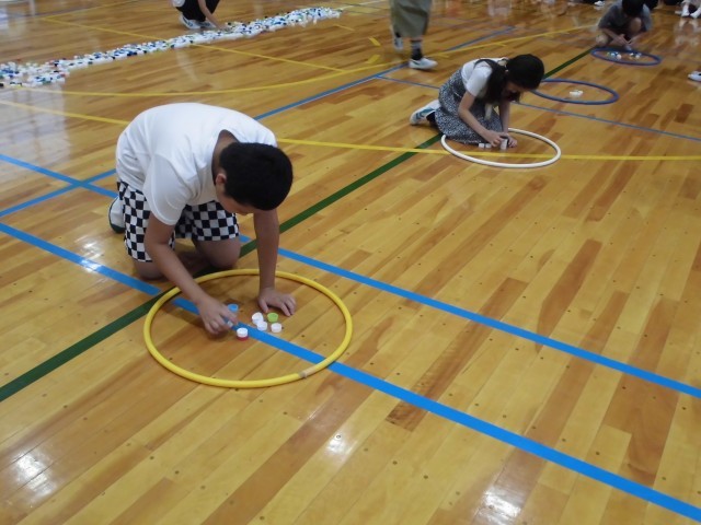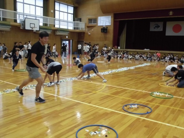 今回の競技は「ハラハラドキドキ!エコキャップ集め積み」です。