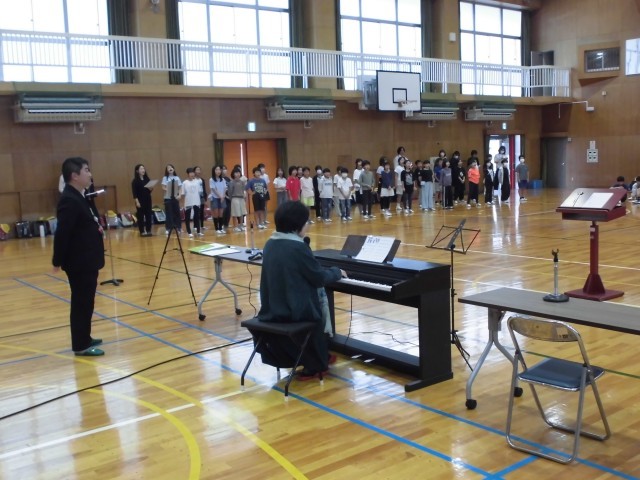 講師をお招きして校内現職研修(合唱指導)を行いました。