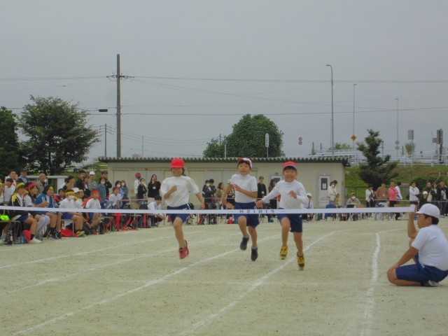 徒競走、ダンス、台風の目を行いました。赤組も白組も限界突破できるよう、風のように走り抜けていました!