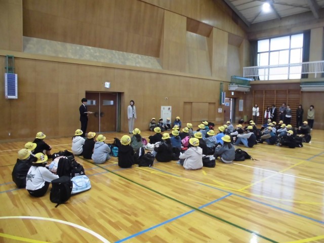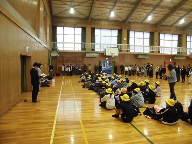 出発式の様子です。6年生は元気に学校を出発しました。たくさんのお見送りありがとうございました。