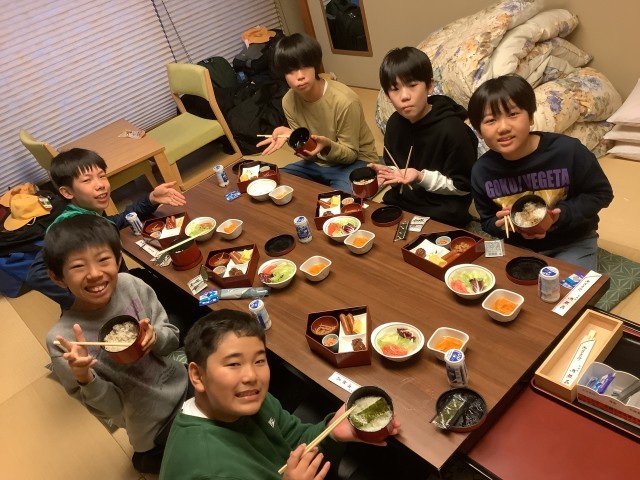 おはようございます。起床後、布団や荷物を整理して、お待ちかねの朝食です。