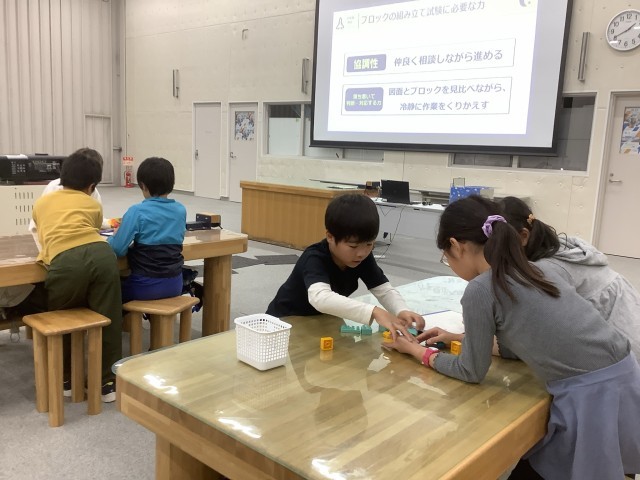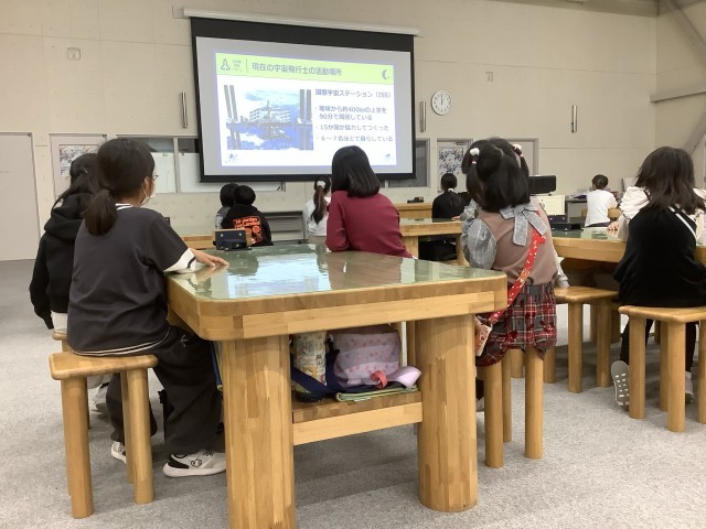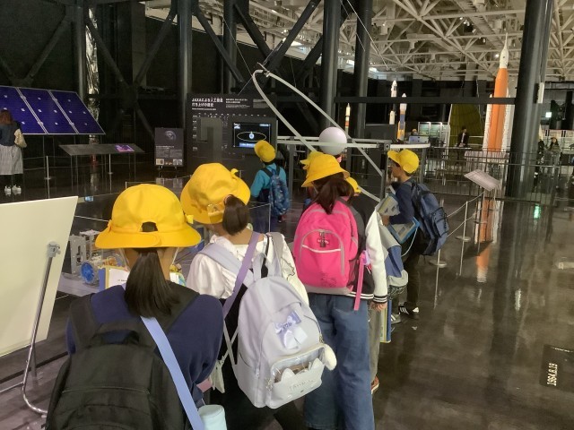 シアターで飛行機の歴史を学んだ後は、室内展示を見て「飛行機のシルエットクイズ」に挑戦したり探査機を動かすゲームをしたりしました。とても良い天気の中、お昼は外で食べました。午後には、宇宙飛行士選抜試験体験をしました。皆、集中力を高めて取り組んでいました。