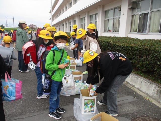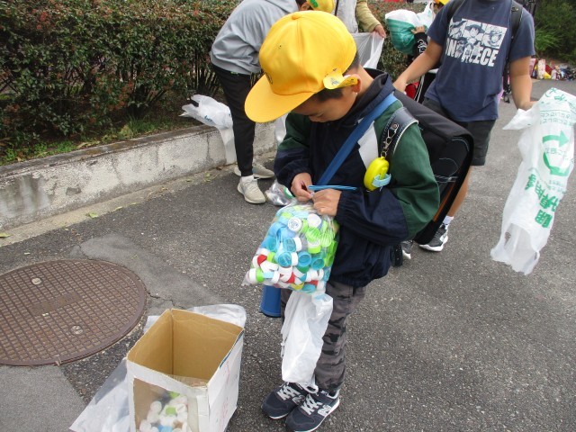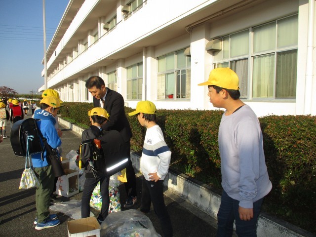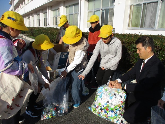 後期代表委員の児童でアルミ缶エコキャップ回収を行いました。