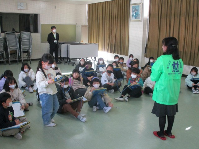 清須市の人権擁護委員さんから「だれもが幸せに生きる権利」について分かりやすく教えていただきました。みんな、友達や自分のいいところを一生懸命考えていました。