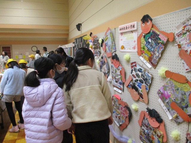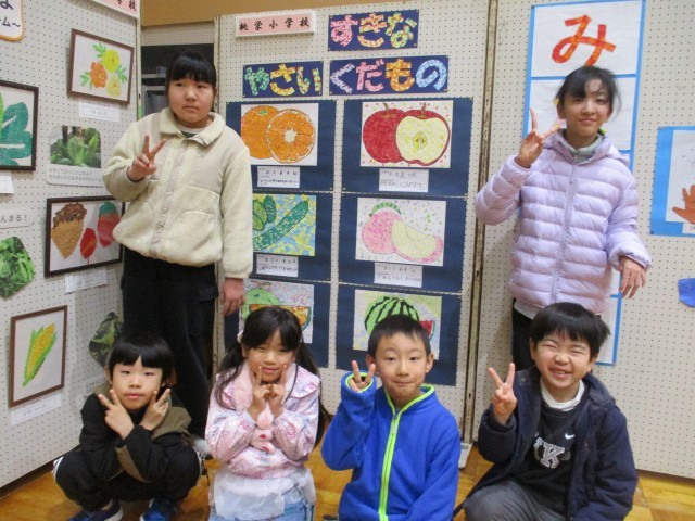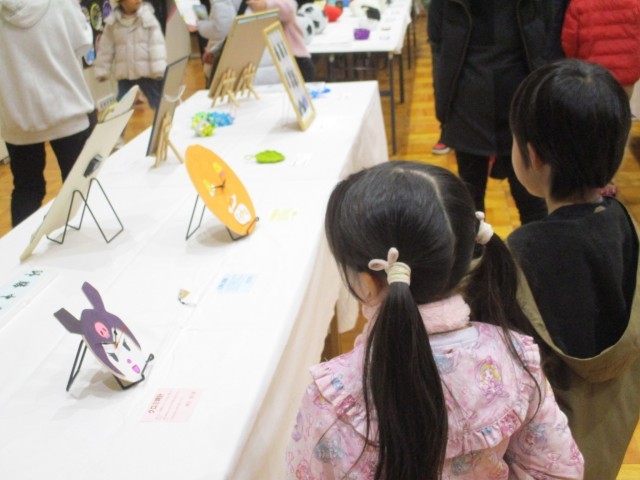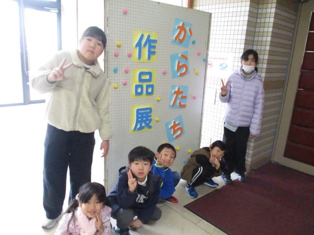 1月15日に「からたち作品展」の見学に行きました。自分の作品の前で記念撮影をした後、お気に入りの絵や工作などを探して会場内を回りました。おいしそうな食べ物の工作を見つけたり、好きなキャラクターの切り絵を見つけたりと楽しく見学することができました。