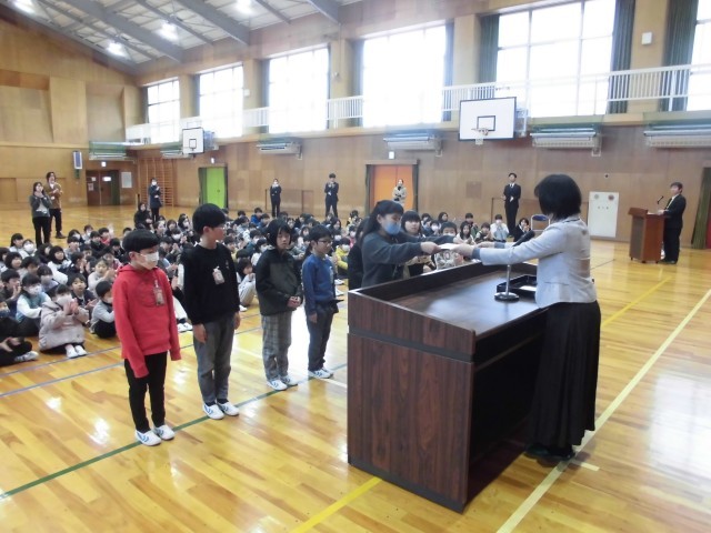 児童朝礼 1/27 公開日 2026/01/27 更新日 2026/01/27 学校行事 朝礼が行われました。教頭先生のお話では、笑うことのよさについてお話を聞きました。最後の全校合唱では、「ふるさと」を元気よく歌うことができました。また、朝礼の前に読書感想画の表彰伝達がありました。 いいね(0)