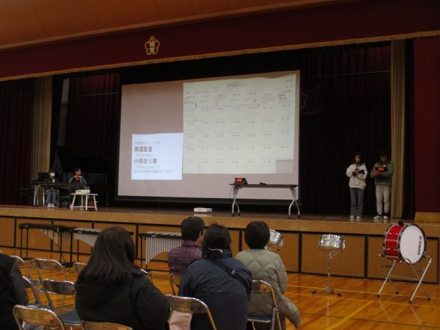 授業参観 【6年生】 公開日 2026/02/07 更新日 2026/02/07 6年生 本日は、六年生の授業参観・学習発表会にご来校いただき、ありがとうございました。子どもたちは一年間の学びの成果を、仲間と協力しながら発表しました。 +2 いいね(0)