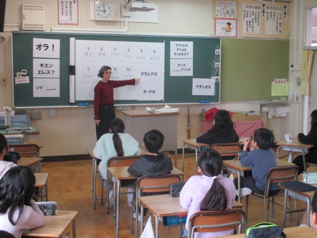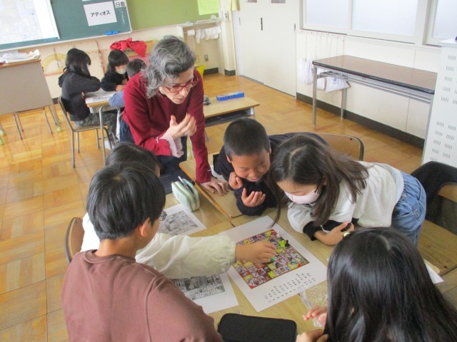 本日、3年生はエリザベス先生による国際交流授業を行いました。スペイン語での数の数え方を復習した後、オカゲームというスペインのすごろくゲームをしました。歓声を上げながら、みんな楽しそうに遊んでいました。