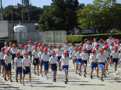 秋空が広がり、第2回の全体練習が行われました。今日は、昨日確認した姿勢や行進を運動場で行いました。真剣な気持ちが行進によく表れていました。本番に素晴らしい姿が見せられるよう、さらに頑張ります。