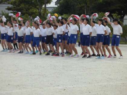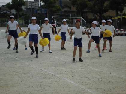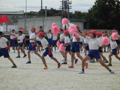 全体練習の4回目です。応援合戦と大玉送りの練習でした。特に応援合戦は、赤白熱のこもった姿が見られ、見ごたえがありました。全校児童が一つになり、それぞれのチームの勝利を願う気持ちがよく表れていました。