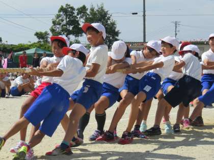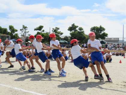 全学年競技の綱引きでは、赤組も白組も力を合わせて行うことができました。どの学年も白熱した戦いでした。