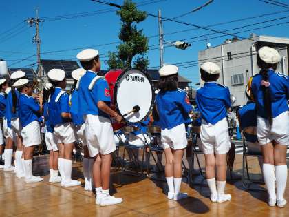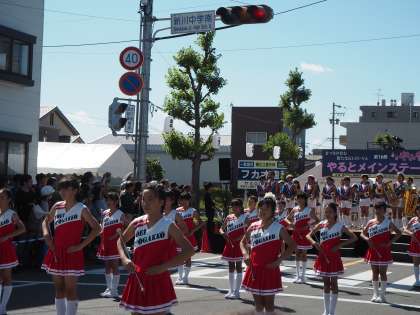 一曲目は、「360°」です。ブラスバンド部の演奏に合わせてバトン部が踊ります。