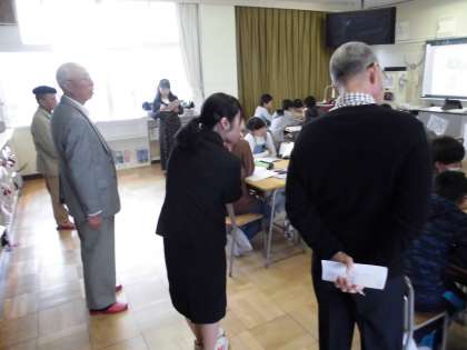 4名の学校評議員さんに来ていただき、2時間目と3時間目の授業の様子を参加してもらいました。グループでの話し合い活動を中心にした授業に、子どもたちが自分の考えをしっかり発表している姿や、友達の話をうなずきながら聞く態度に感心したと褒めてもらいました。「目に見えないものを大切にする心」など、これからの教育活動にかかわる貴重な意見をたくさんいただきました。明日からの指導に生かしていきます。