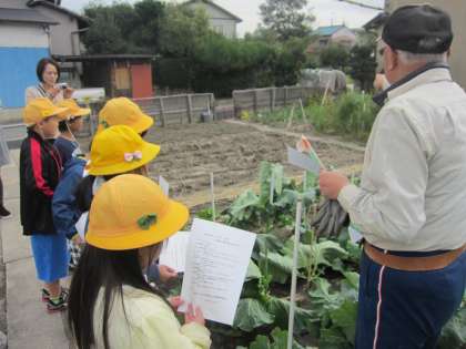 2年生の生活科の授業で「まち探検」に出かけました。今回は、地域の畑で野菜を作っている方・見守り隊の方・児童館を訪ね、インタビューをさせていただきました。自分たちの住むまちの人は、様々な工夫をしながら生活していることを知り、まちへの関心を高めることができました。