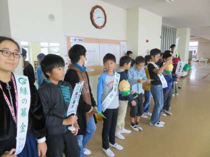 園芸部員による「みどりの募金」が行われました。愛知県の緑化推進のための募金です。多くの保護者の方の協力で、園芸部員の児童も一生懸命活動しています。25日も募金が行われます。ご協力をお願いします。