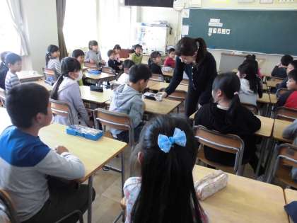3年1組で食育指導がありました。清須市学校給食センターの佐藤先生にご指導していただきました。テーマは、「命をいただきます」です。魚、野菜、米、にも命があります。大切な命から、私たちは栄養をいただいていることが分かりました。大事な命に感謝して、残さず食べられるようになることを期待しています。