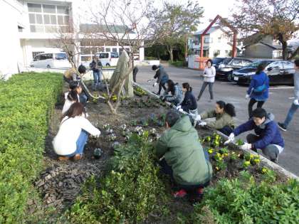 台風一過、晴天に恵まれて「第3回親子ふれあいあいさつ運動」が行われました。台風の影響か風の強い朝でしたが、多くPTA委員さんに参加してもらいました。子どもたちはいつもの同じように、元気な声で一日を始めることができました。その後、PTA花壇の整備も手際よく進め、冬から春の花に模様がえしました。子どもたちと一緒にしっかり育てていきます。
