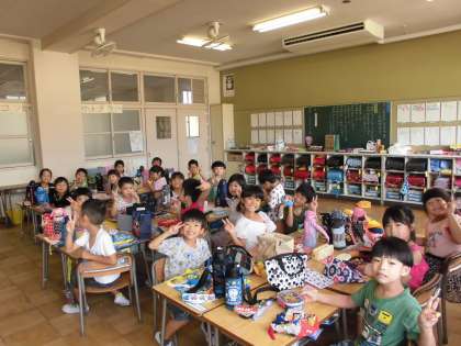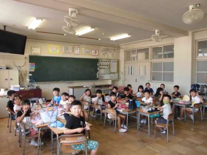 給食の時間は、楽しい楽しいお弁当でした。どんなおかずが入っているのか、会話が弾みます。1年生は、にこにこで「おいしいー!!」の顔をしてくれました。