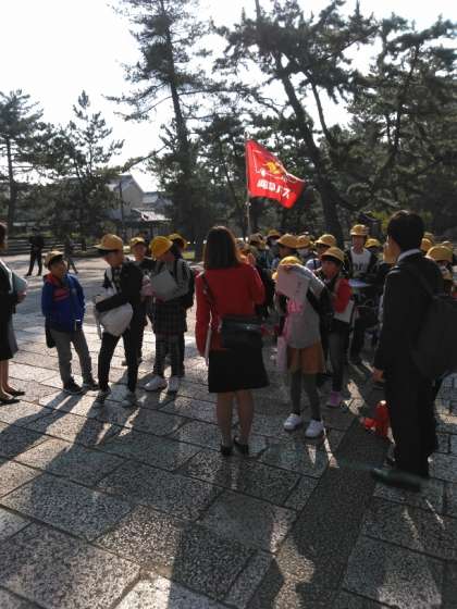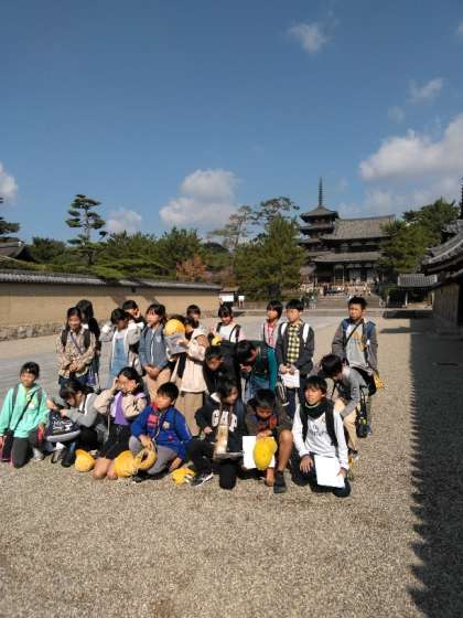 予定より少し早く無事に法隆寺に着きました。
