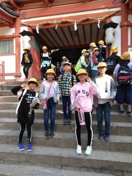 手向山八幡宮に最初のグループが来ました。