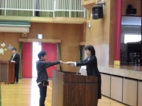 代表の児童が校長先生から修了証を受け取りました。校長先生から担任の先生や友達に見...