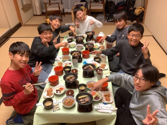 御殿荘に到着しました。部屋で荷物の整理をしたら夕食が待っています!