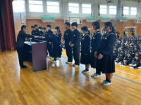 次に後期生徒会役員と学級役員の任命が行われました。学校やクラスの代表として、自覚と責任を持ち行動して欲しいと思います。みんなで協力して、より良い学校そしてクラスにしていきましょう。