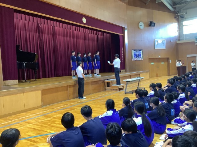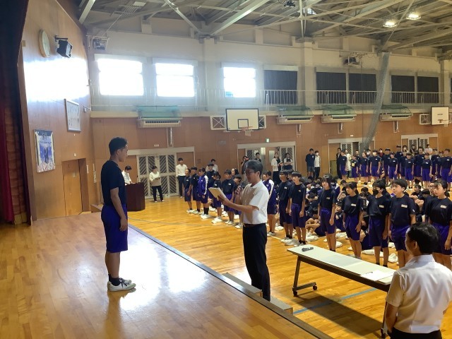 生徒会役員、学級役員の生徒が一人一人名前を呼ばれて返事をし、任命状を受け取りました。