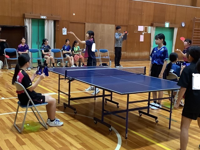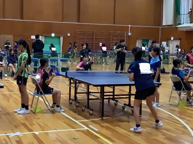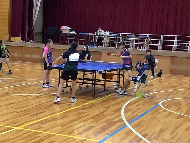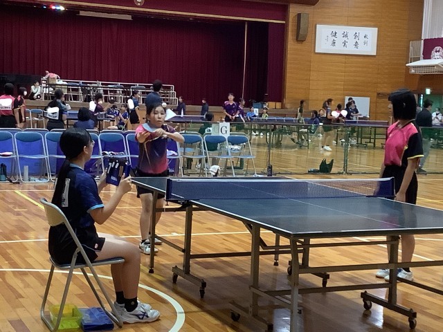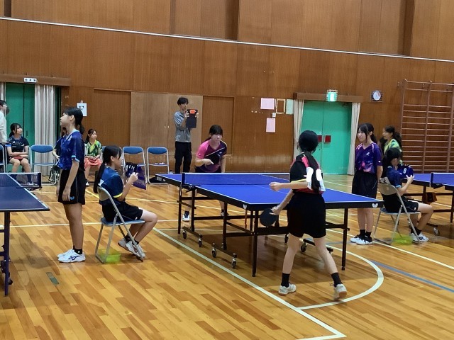 本日、女子卓球部は西春日井地区新人戦(個人戦)に参加し、本校からは8名の選手が出場しました。その中で1名の生徒が3位入賞を果たしました。ドライブや強打で攻めたり、ツッツキで繋いでミスを誘ったりするなど、相手のプレースタイルや状況に合わせてうまく対応することができていました。また、会場中が注目する中、力を出し切る姿に頼もしさを感じました。気迫あふれるプレーに皆の応援にもより熱が入りました。その他の選手もベスト8まであと一歩のところまでいったりするなど健闘し、最後まで諦めずに戦いました。