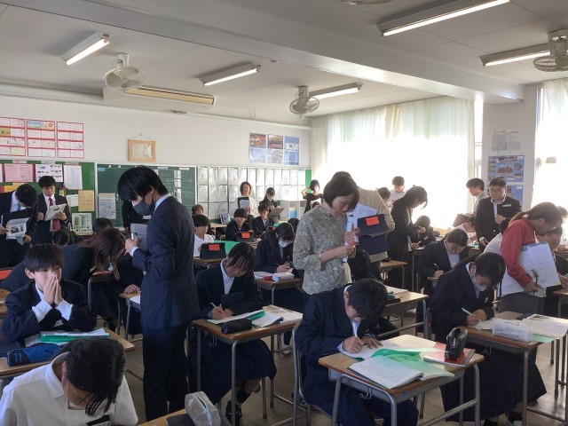 本日、2年生体育、1年生国語の研究授業を行いました。多くの先生たちが参観する中、生徒たちは緊張しながらも精一杯、授業に取り組んでくれていました。下校後は、教員で研究協議を行い、よりよい授業づくりのために話し合いをしました。今後も全員が参加し、分かる授業を目指して研鑽を積んでいきます。