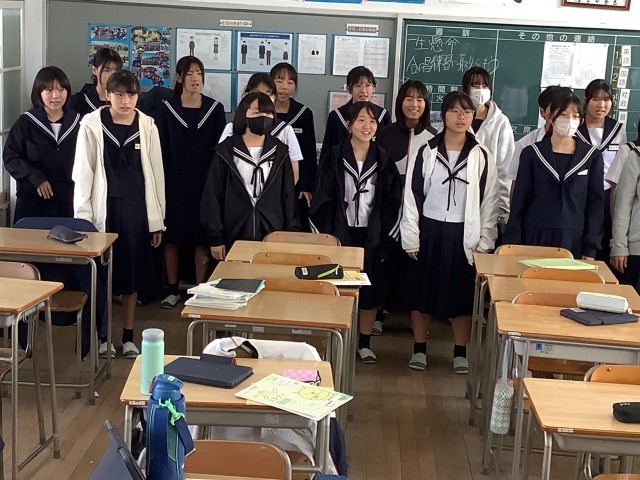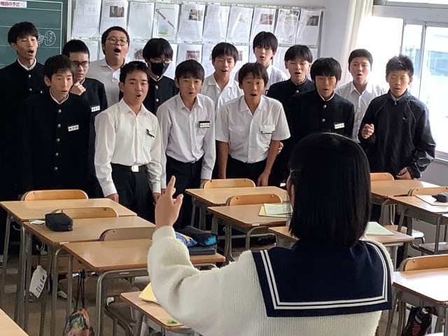 昨日は、教育委員さんや先生方にご来校いただき、ご指導・ご助言をいただきました。本日は、通常の授業が再開されました。 2年生の教室や廊下の前を通りかかると、合唱練習の声が響いています。音楽の授業で学んだ後はさらに歌うことが楽しくなリ、表情や声の出し方などで変化を感じた生徒もいました。「本気で歌う」「全力で取り組む」「素直にアドバイスを聞く」そんな生徒の様子を見ていて、頼もしく感じました。どのクラスも、気持ちの高まりを感じながら取り組めるといいですね。