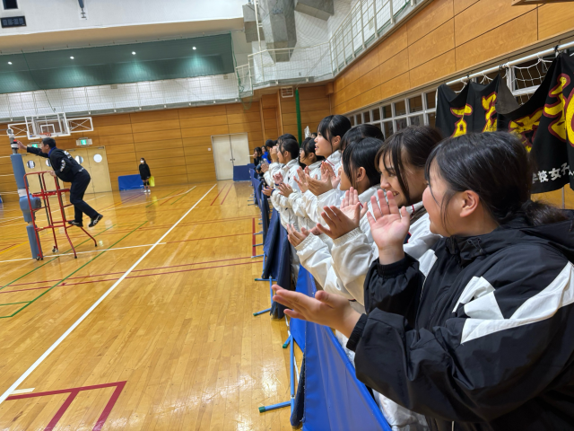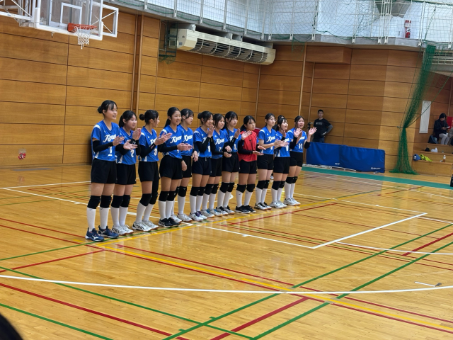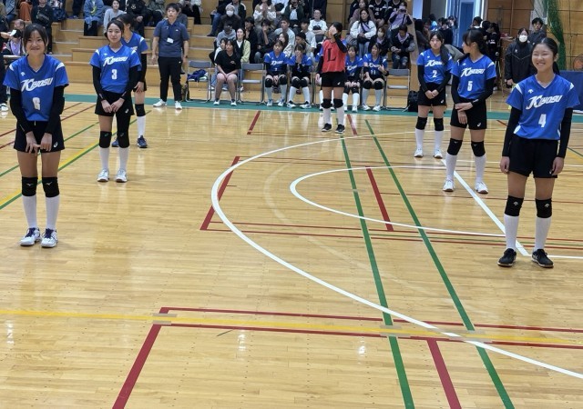 1試合目は、南城中学校と対戦し、1セット目が25-23、2セット目が25-19のトータル2-0で勝ちました。2試合目は、小牧西中学校と対戦し、1セット目が21-25、2セット目が16-25のトータル0-2で惜しくも負けてしまいました。しかし、一人ひとりが日々の練習成果を出し切り、お互いに声を掛け合いながら試合に臨む姿が見られました。悔しい表情を浮かべる生徒もいましたが、この経験を活かして、1つでも多くの試合に勝てるように日々の練習に取り組んでいきたいと思います。また、声を枯らしてまで応援に励んでくれた子どもたちにも感謝します。