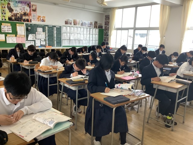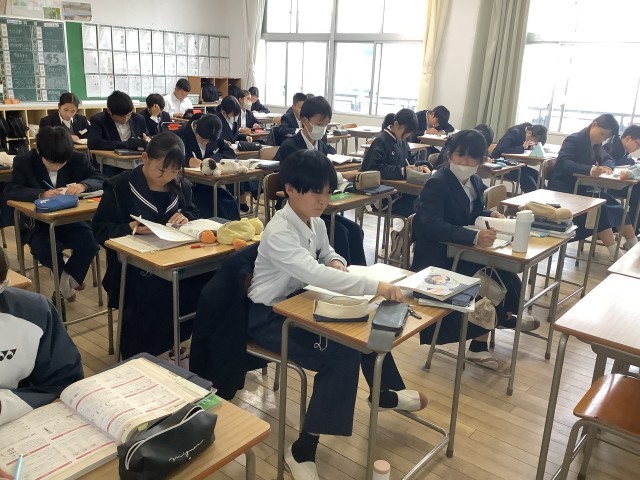 体育祭と合唱コンクールが終わり、テスト週間が始まりました。本日は総合の時間に教育相談と自習を行いました。今回は9教科で科目が多いので、早め早めに勉強を進めておきましょう。