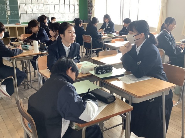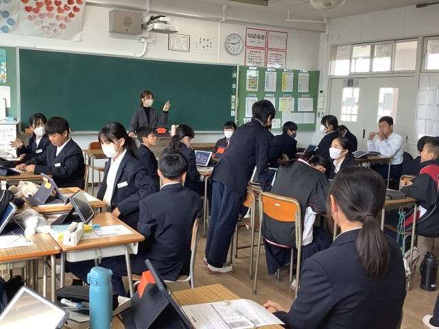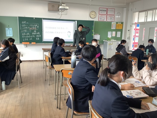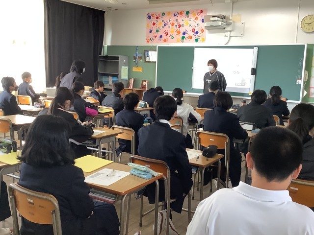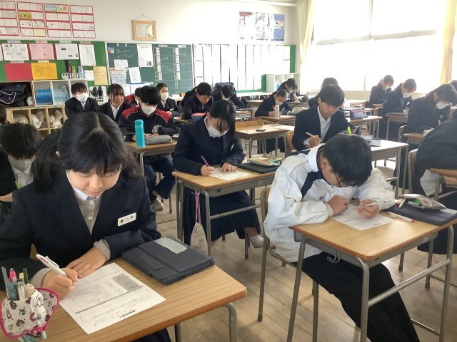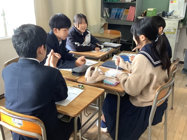 本日より進路学習が始まりました。今日は何のために学校に通うのか、何のために学ぶのかをクラスのみんなで考えました。様々な意見がグループ内で飛び交う様子や、担任の先生の話を真剣に聞く姿が見られました。これから、二年生の職場体験にむけて、進路学習を進めていく予定です。自分の進路について、少しずつ考えを深めていけるといいですね!