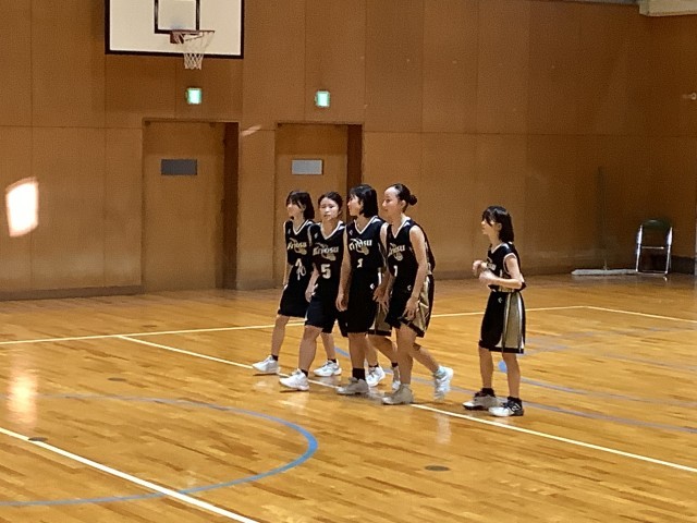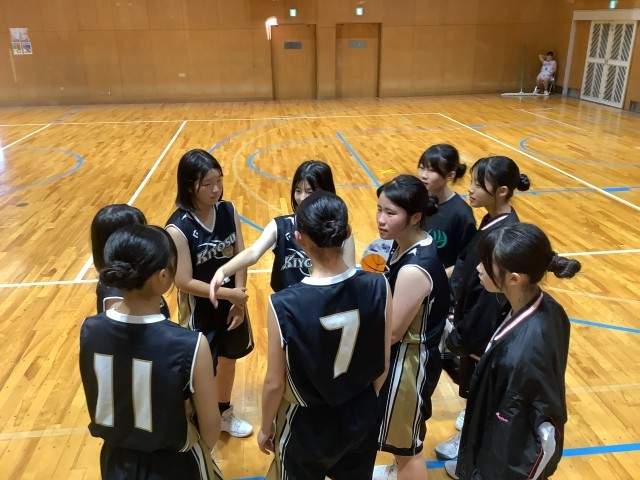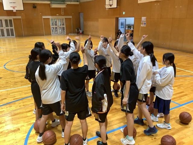 初戦は小牧中学校と対戦し、勝利することができました。相手チームは身長の高い選手が多く、リバウンド勝負に苦しみました。また、イージーシュートを落としてしまったり、トラベリングやファウルを多くしてしまったりと、ミスが目立ち、課題が多く見つかりました。その中でも、素早い速攻で得点を重ね、粘り強く勢いのあるディフェンスで相手のミスを誘うなど、良いプレーもたくさん見られたので、来週までに、強みを伸ばし、課題を克服していけるように、平日の練習に取り組んでいきたいと思います。