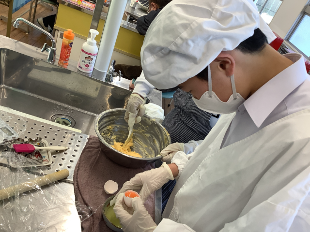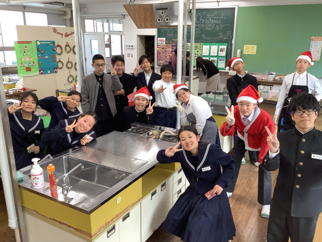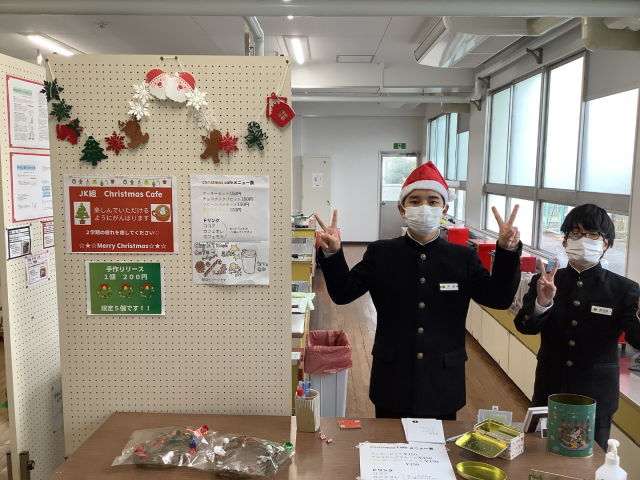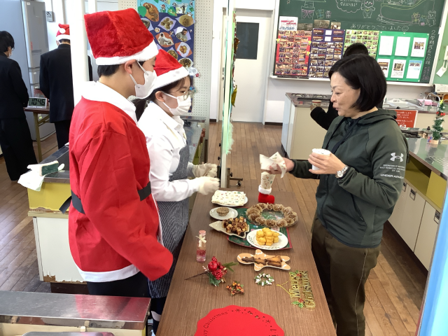 12月17日(水)に、クリスマスカフェを行い、調理、接客、販売、買い物の模擬訓練を行いました。今回は「クリスマスカフェ」がテーマだったので、ココア、カフェラテ、カフェモカとクリスマスらしいおやつをいくつか準備しました。お客さんに食べていただくので、マスクや手袋を付けて調理を行いました。食材などの無駄を出さないように努力したり、調理台などを極力汚さないようにしたり、できるだけ速く、丁寧に作業に取り組んだりすることを学びました。また、「お客さん役の先生や生徒に楽しんでもらおう、ほっとしてただけるようなカフェにしよう」という目標をもって、笑顔で、明るく接客することに挑戦しました。加えて、一緒に働く仲間への言葉遣いや協力することの大切さについても考えるきっかけとなったと思います。生徒たちは「楽しかった」、「働くには体力が必要だと感じた」、「始めは緊張したけど、少しずつ慣れて楽しく接客できた」と言っていました。お客さん役の先生や生徒たちが楽しんでくれたことで、より達成感を感じることができたと思います。調理の仕方や工夫、食べ物やお金の取り扱い方、接客を通して人の役に立ったり、喜んでもらったりする経験を通して、将来の就労に向けて、前向きに考えるきっかけになるといいなと思います。2学期も残り数日となりました。2学期の最後にクリスマスを一緒に楽しむことができて、よい思い出にもなったと思います。