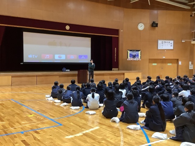 1月8日(火)5時間目は一年生学年集会を行いました。今年のはじまりということで、学年の先生から一人ずつ話を聞きました。最後までしっかり顔を上げて話を聞くことができました。今年もよろしくお願いします!!
