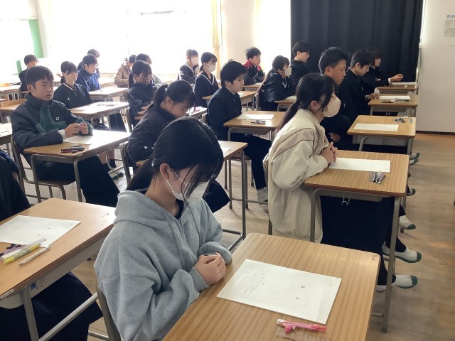 今月20日に1年生と2年生は実力テストが行われ、生徒は集中して取り組んでいました。昨日1月21日は進路担当の教師から、進路について具体的な説明を聞きました。意識を高く持ち、自分事として、将来のことを考えるきっかけにして下さい。