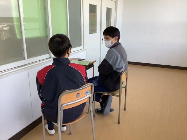 本日6時間目に教育相談を行いました。学年末テストを控えているので、自習にしっかりと取り組み、時間を有効に使うことができました。気合を入れて頑張りましょう。