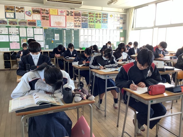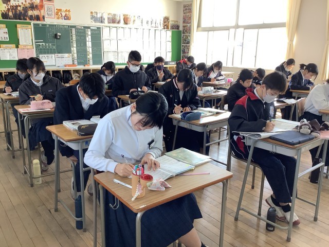 本日1限目に個人プロフィールの作成を行いました。生徒たちは、はじめての記入に緊張しながらも、中学を卒業した際に記録に残る大切な物として、丁寧に名前を記入しておりました。
