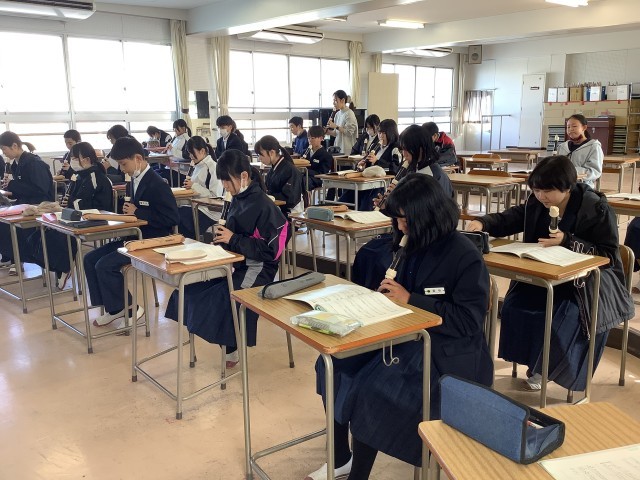 現在、音楽の授業では校歌や国歌などの歌やリコーダーを練習しています。リコーダーの練習では、となりのトトロの曲「風の通り道」を演奏していました。楽譜をよんだり、指づかいに苦労しながらも、楽しみながら演奏している様子が見られました!