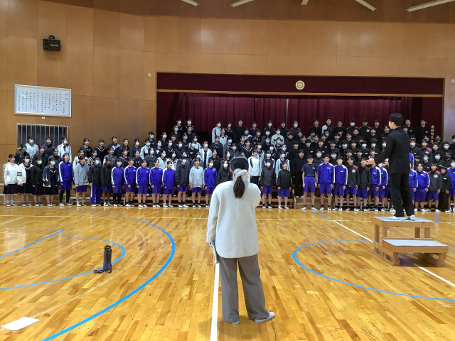 今日の6時間目は3年生6クラスが体育館に集まり合唱練習を行いました。