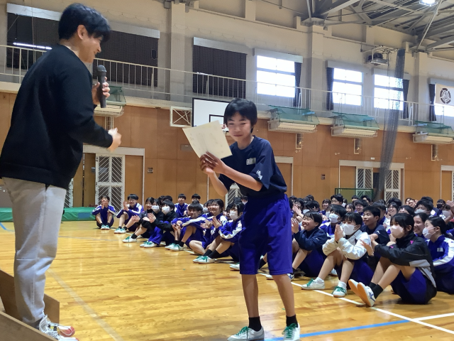 本日5、6時間目は学年レクリエーションを行いました。最初に新聞紙ドームチャレンジ、次にジェスチャーゲーム。最後にドッチボール・ドッチビーなどのクラス対抗競技で大いに盛り上がりました。実行委員の生徒たちやみなさんの協力のおかげで、楽しむことができました。これからも協力して学校生活をより良いものにしましょう。