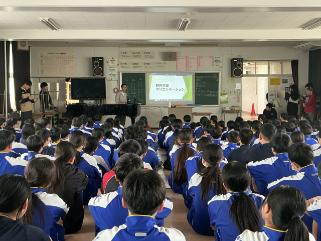 生活や学習についての話があり、改めて中学校生活を見直す良い機会となりました。また、野外学習のオリエンテーションもありました。学年の合言葉でもある「かっこいい、バカになれ!」にふさわしい行事にしてほしいです。