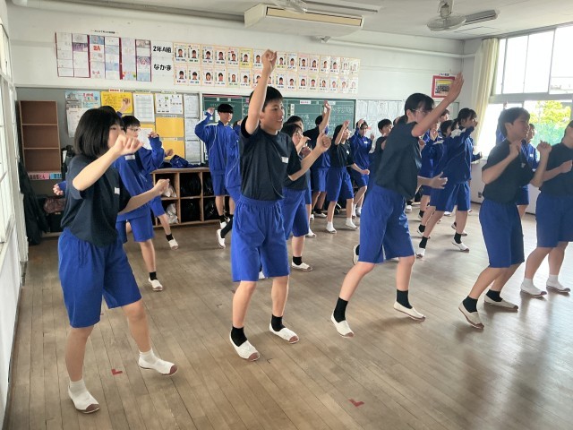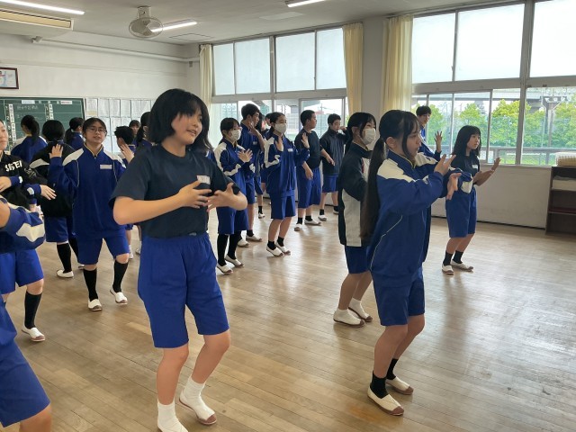 野外学習に向けてダンスの練習を行いました。どのクラスも少しずつ完成に近づいてきています。一生懸命盛り上げようと取り組んでおり、野外学習当日が楽しみです。