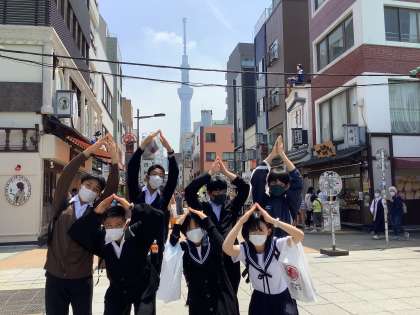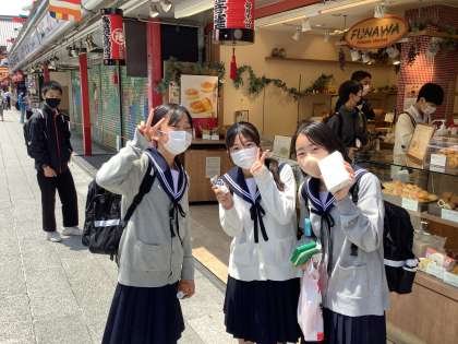 DEF組の浅草寺・仲見世通りでの班別散策の様子です。