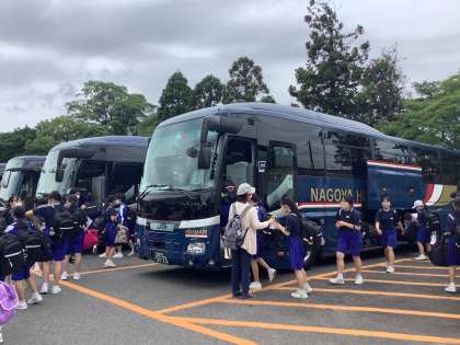 本日より2日間、2年生は「みんなで灯せ絆の火 〜カレーより濃い思い出を〜」をスローガンに野外学習に出かけます。先ほど全員元気にバスで出発しました。