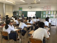 体育科の授業では、タグラグビーを行いました。確実にパスを回す。タグを取られないようにする。トライができるようにするなどの目標達成に向けて、どのチームも皆よく頑張っていました。